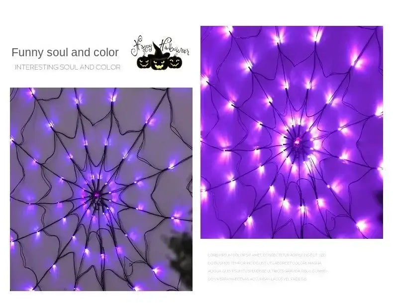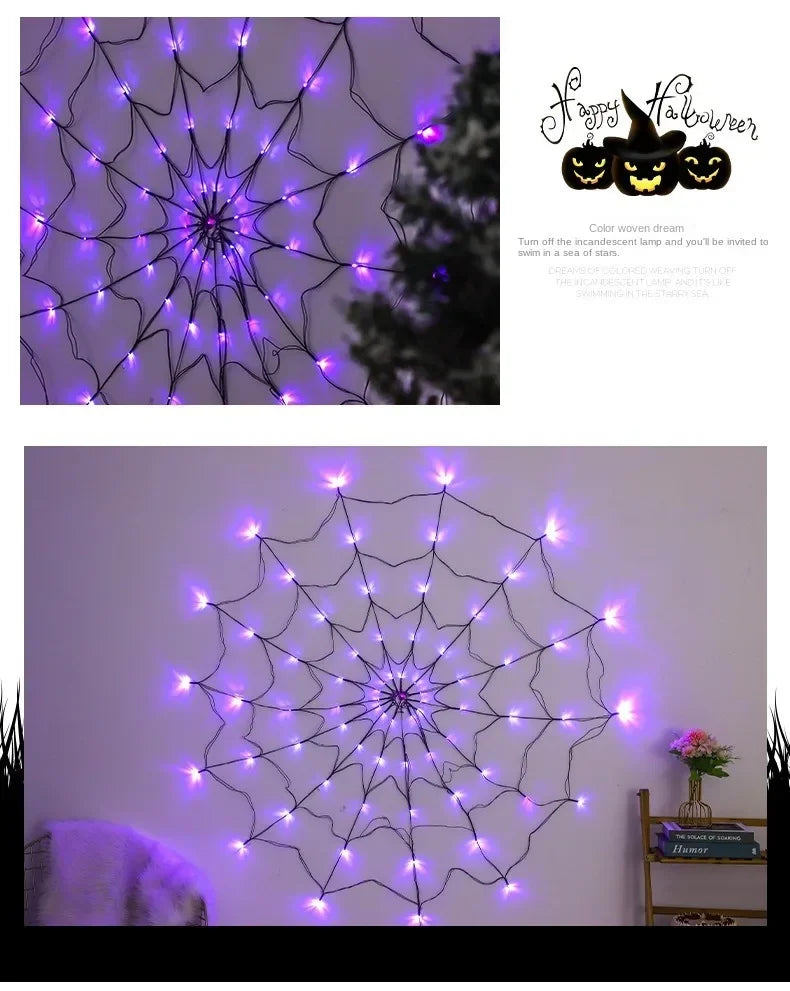 Create a spooky yet fun atmosphere with these Halloween LED Spider Web String Lights! Perfect for haunted houses, parties, and outdoor or indoor setups, these lights bring your Halloween decorations to life with a vibrant orange and purple glow.