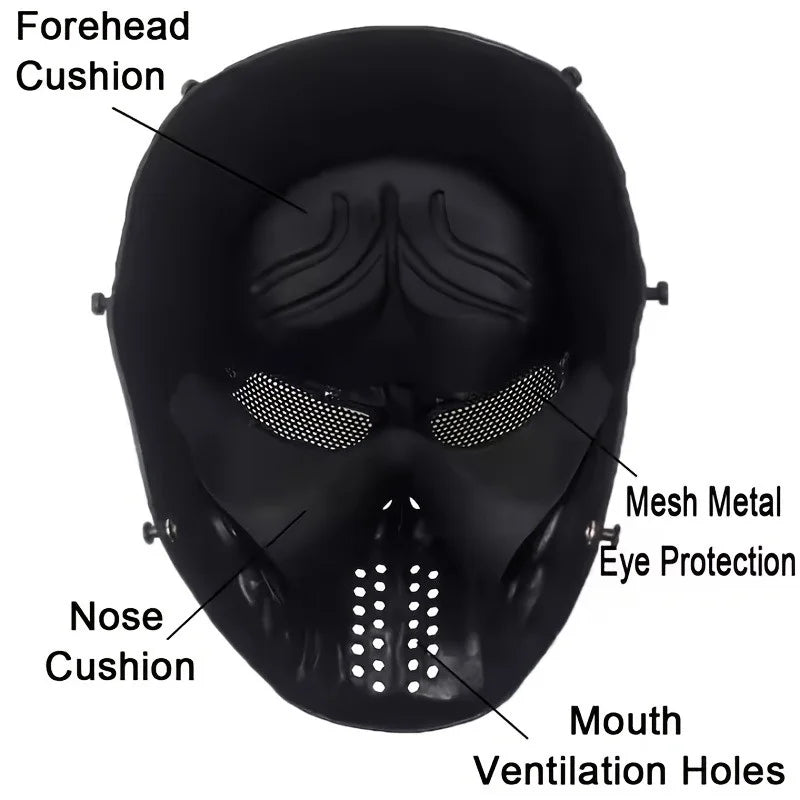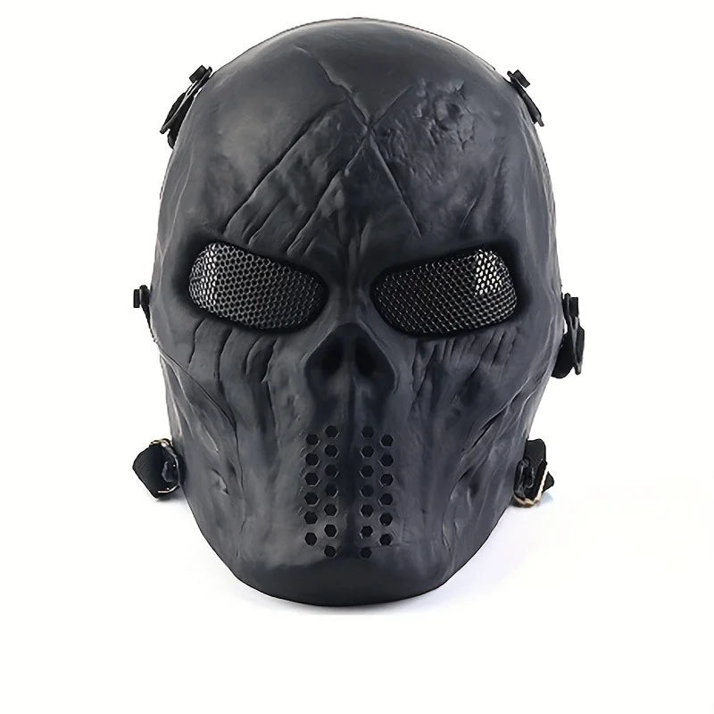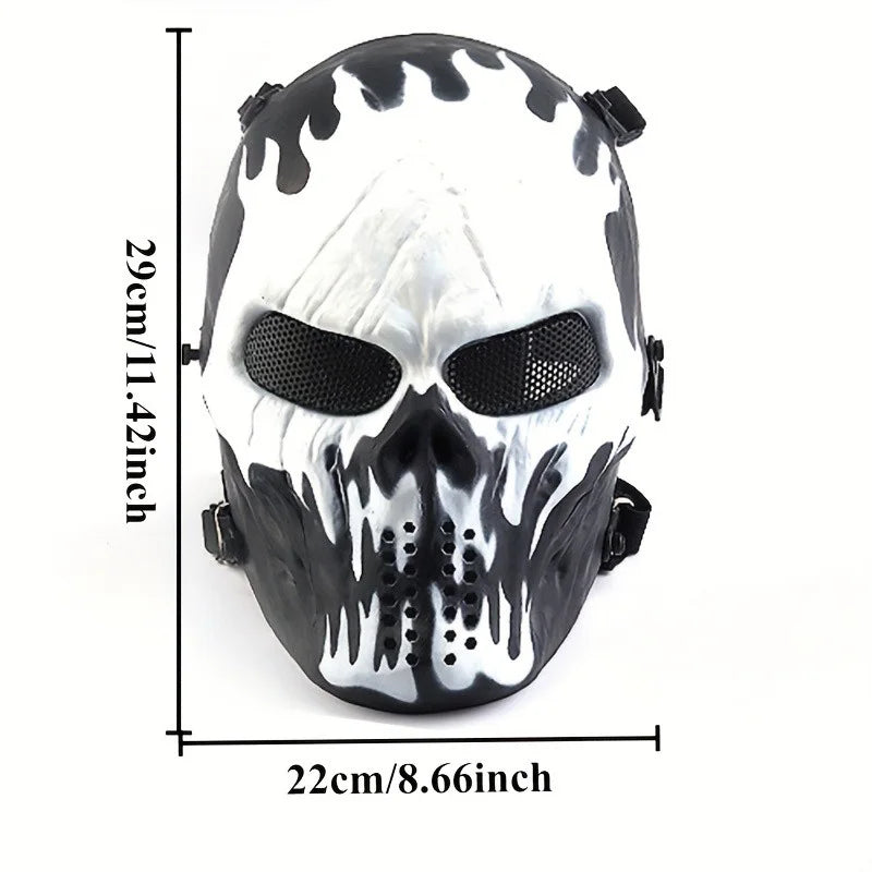 Terrifying Design: Realistic skull look with camouflage details for an intense, fearsome appearance.