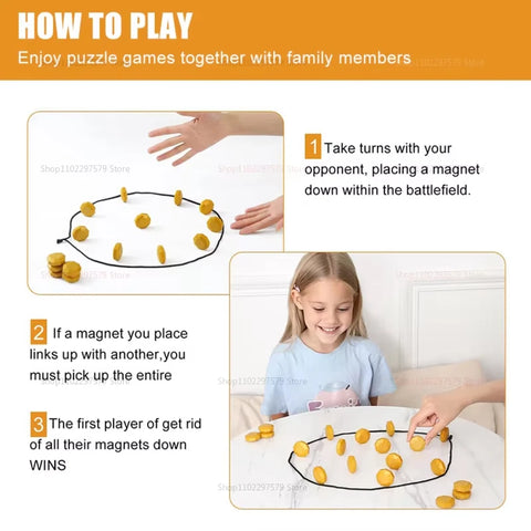 Enjoy endless entertainment and learning with the Magnetic Interactive Board Game, designed for kids and adults alike! This innovative magnetic tension game blends strategy, creativity, and surprise. Players take turns placing magnetic pieces on the game rope — but watch out! The magnetic pull can shift at any moment, adding excitement to every move. Perfect for boosting problem-solving, focus, and teamwork, it’s great for family nights, classrooms, and travel fun. Compact, durable, and full of brain-teasing challenges, this game is a must-have for every household.