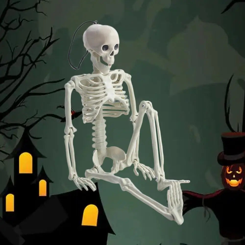 Crafted from durable, lightweight plastic, the skeleton features realistic joint details and a hanging loop for easy display. It’s perfect for Halloween décor, haunted house setups, science classrooms, or anyone who loves gothic or anatomical aesthetics.