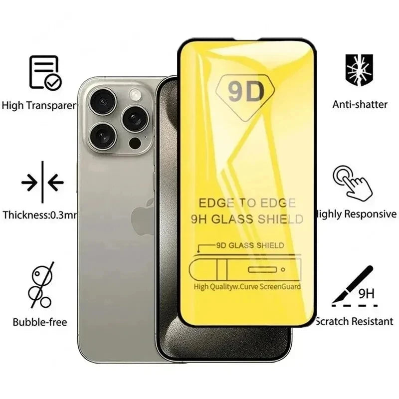 Description Keep your iPhone screen crystal clear and safe with this 9D tempered glass film. Designed for HD clarity and reliable protection, it guards against scratches, smudges, and everyday wear while preserving touchscreen sensitivity.