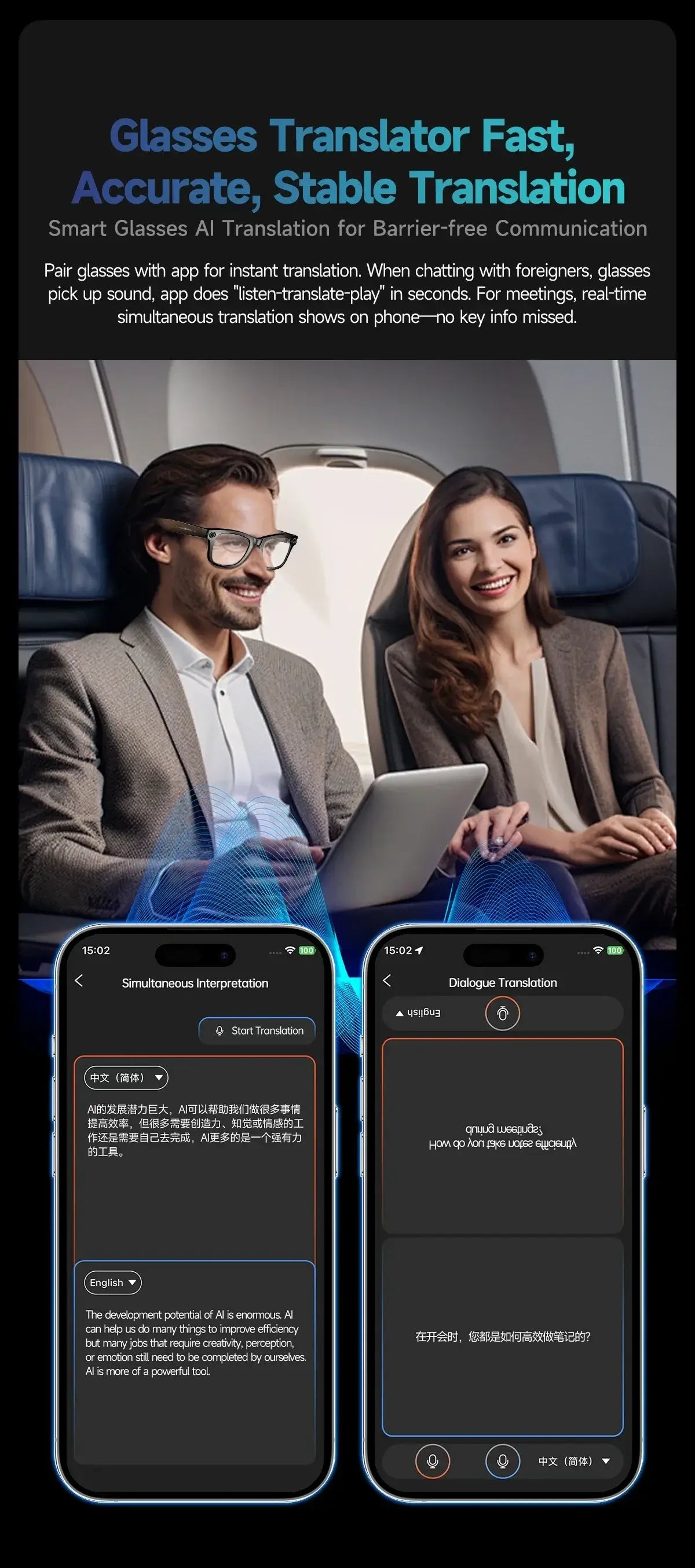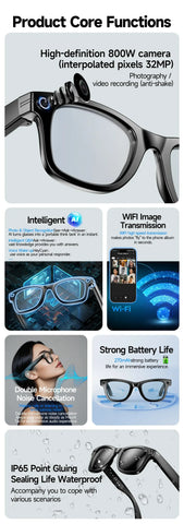 Experience the future of wearable technology with the AI Smart Glasses 2025, featuring a built-in 8MP camera, real-time translation in 100+ languages, ChatGPT 4.0 access, and Bluetooth connectivity for calls and music. Perfect for both men and women, these innovative glasses blend style, intelligence, and functionality into one sleek design.