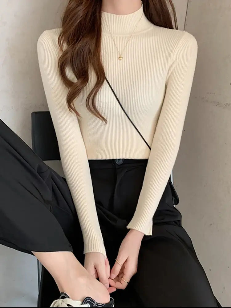Stay cozy and stylish with this women’s slim-fit mock neck sweater. Made from a soft blend of acrylic and cotton, it offers high stretch, a regular fit, and fine yarn construction—perfect for casual autumn and winter wear.