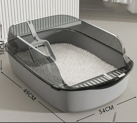2.【Easy to Clean 】: Open Tray is removable ,High sided cat litter tray, simple structure, detachable design, easy to clean, and reusable.