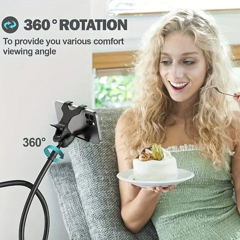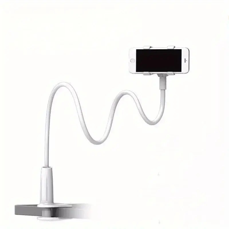 Enjoy hands-free phone use with this Lazy Bedside & Desktop Mobile Phone Clamp Bracket. The flexible gooseneck arm allows you to adjust your phone to any angle, making it perfect for watching videos, live streaming, video calls, or reading in bed or at your desk. Equipped with a sturdy clamp and ergonomic handle, it keeps your phone secure while offering convenience and comfort for lazy or multitasking users. Compatible with most smartphones.