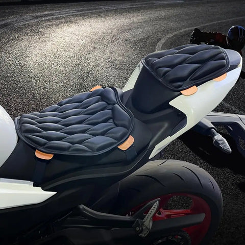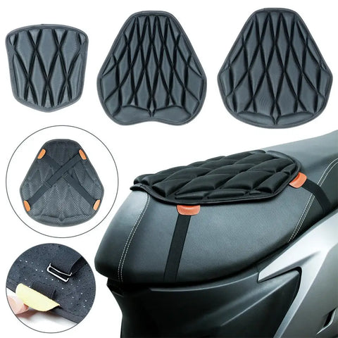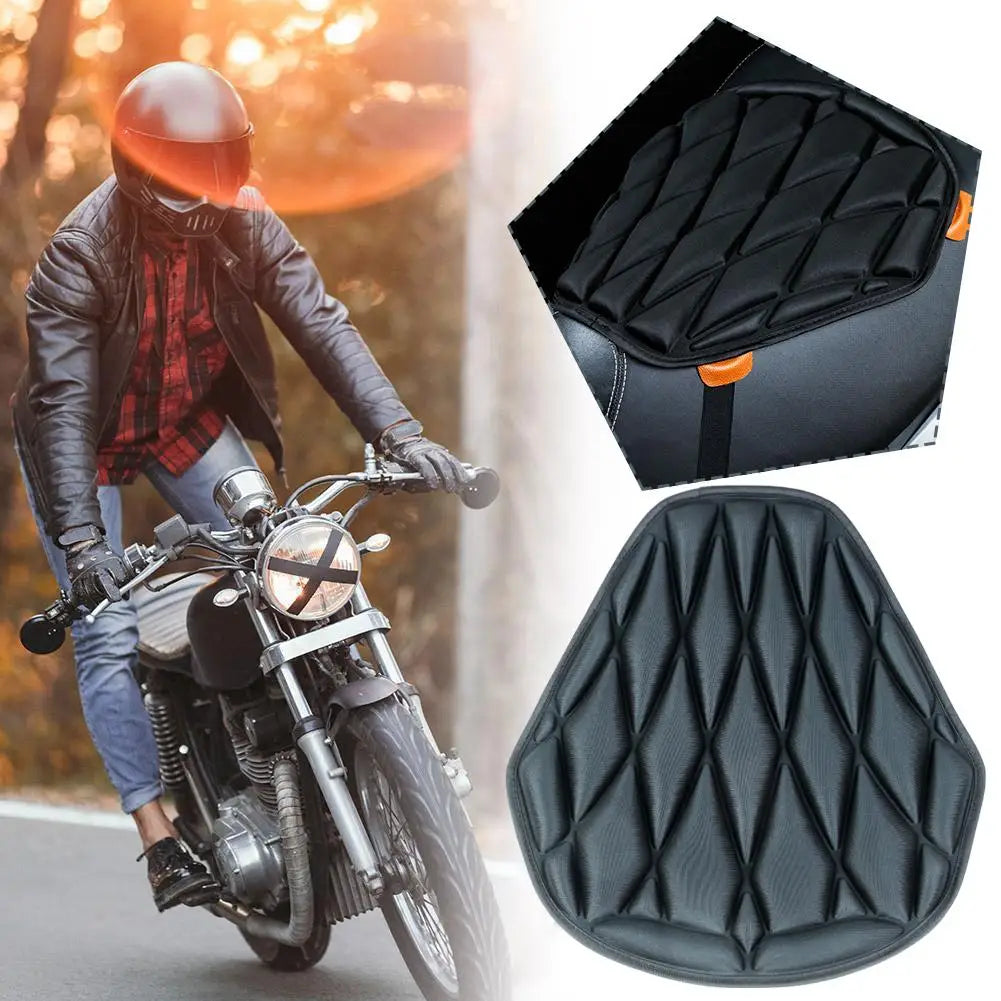 Upgrade your ride with this Motorcycle Seat Cushion Cover, designed for all-season comfort. Made from breathable Lycra fabric with shock-absorbing sponge filling, it provides heat insulation, sun protection, and waterproof protection. Non-inflatable and universal, this cushion ensures a comfortable ride while reducing pressure and vibrations. Perfect for all types of motorcycles.