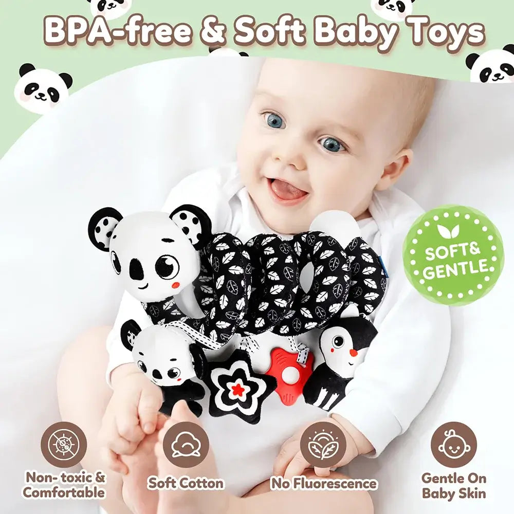 Perfect as a baby shower gift or a newborn sensory toy, this spiral hanging toy combines fun, comfort, and developmental benefits all in one!