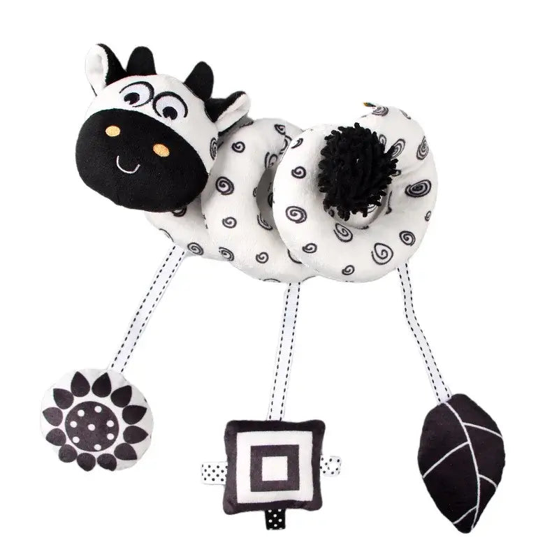 Engage your baby’s senses and curiosity with this Newborn Spiral Hanging Activity Toy, featuring adorable black & white lion and koala plush characters. Designed to wrap easily around cribs, car seats, or strollers, this soft sensory toy keeps your baby entertained and stimulated wherever you go.